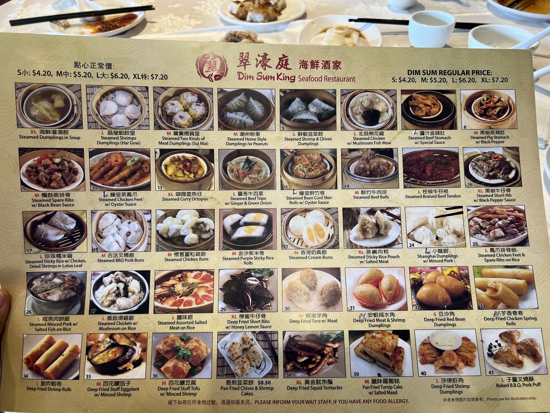 Read moreFirst experience at this restaurant- the staff was very courteous and attentive. They were very helpful with making sure we got our dim sum orders even if the food wasn't currently out on the carts: the child in our party was very impressed that they had 3 different flavours of congee and had the traditional pork and the plain one which we ended up having leftovers that we transformed into a sinigang-arroz caldo hybrid but that's more for another day. This is what we ordered: Har gow, siomai, chicken feet (still not my thing), deep fried short ribs with honey lemon sauce, pork and preserved egg congee, plain congee, rice noodle roll with shrimp, pan fried seafood pancake, and deep fried sesame balls. The traditional hacao was decent, I'm told the siomai was quite good but wouldn't know because it disappeared before I had any. I really loved the seafood pancake. The Cantonese Chow Mein was a bit of a miss for me because the calamari was the thin kind and so it ended up a little over cooked and rubbery, and the sauce on the noodles was a little too salty so the real flavour was muted by comparison. The texture and consistency of the noodles were okay. The short ribs were a definite highlight- loved the seasoning on it as it wasn't as super sweet as most kalbi. The sesame balls were massive: but the superfan at our table is used to the filling being a red bean paste and this was I believe a mung bean paste so the superfan gave it no stars. Pro tip: use an air fryer for seafood pancake and cantonese chow mein leftovers: the crispy mixed with the soaked in flavor definitely made these dishes better second...