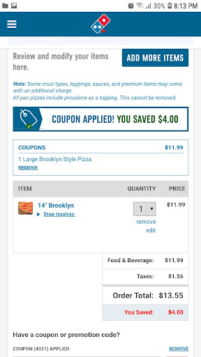 Ā Ā Ā Read moreI order delivery often, but have only visited the store once many years ago. The food is always excellent. I love the pizza, the chicken and the desserts. The website is very easy to use. I love that it saves my recent orders and easy orders. I love the tracking that shows how the order is progressing; it's very reliable. I love that there are so many options for toppings. I love that Domino's has its own delivery drivers and that they ensure that the order is placed in my hand, not left on the floor at the door. Honestly, the service from Domino's should be an example to other restaurants. Recently, I ordered at a really late hour because it was the only restaurant open, and it was a relief after a long day. I more willing give tips because I can see that there is care taken in each step of my customer service with Domino's. I genuinely appreciate the Domino's experience. In all the years I've ordered from here, I have never had a complaint. I do not know if the service is the same across the franchise but I'm certainly very pleased with this location. They have never failed but if someday they do, I'd forgive them easily because they've been exceptional for as long as I...
