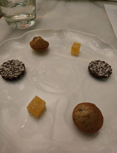For the meat course, the Aged Duck with Beet and Pepper was perfectly cooked and full of robust flavors. The pre-desserts and desserts were equally impressive: the Yogurt with Pomelo and Cardamom was refreshing, while the Pain Perdu with Buckwheat Almond was a satisfying finale. The Petit Fours added a delightful sweet touch to conclude this culinary journey.