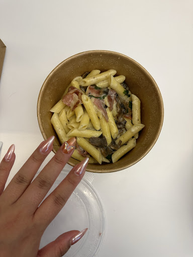 Thirdly about the food itself, it was average despite the fact that the bottom of my pizza was basically black, I ordered the create your own and they were being so stingy with the toppings. My brother got the carbonara pasta and it was so overcooked and bland. We also got a Margherita pizza which was basically 10% cheese and 90% tasteless sauce which made the entire pizza soggy and unappetizing.