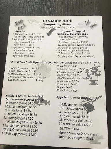I came by today for the first time to try the salmon aburi dynamite sushi (8 pieces) from their limited time menu (ends May 31st!). To my surprise, the order came with salad and miso soup. The total price was $13.50 which is a great deal! You can also get 10% off if you pay with cash.
