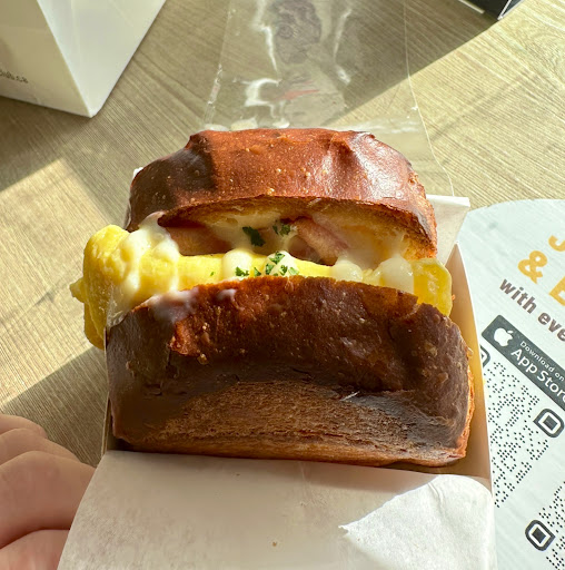 I had the bacon & cheese and loved it. The sandwich is rich. The egg is fluffy, the sauce is creamy, and bacon perfectly cooked to be the slightly chewy level I like.