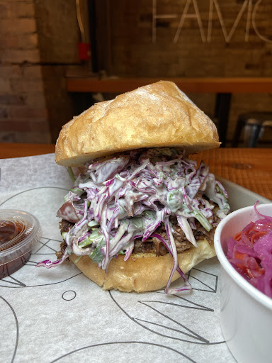 Food wise: AAWESOMEE. I think one of the best sandwiches I've ever had. The bread was the perfect texture, slightly crisp but soft inside and bouncy. Meat = tender, flavorful, juicy, soo good. I was going to ask for sauce since the list didn't include any and I am definitely a sauce person (bbq, mayo etc.) but this sandwich definitely didn't need anything. The slaw was crunchy and complemented the meat well, and the cheese (added extra) was melty goodness.