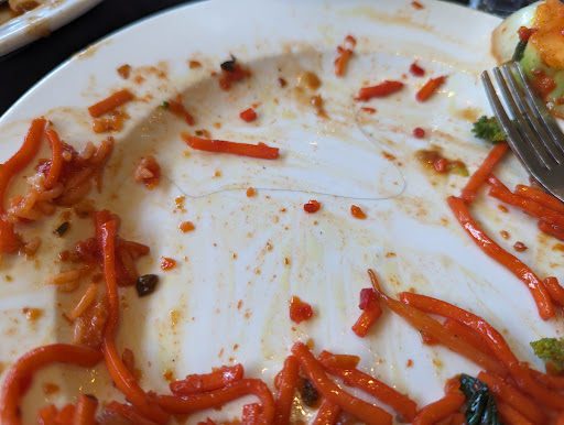 When we placed the order and asked for the chili chicken to be extra spicy, the server who is at least 40 years old, replied in a fake, babyish voice that they'd provide extra chili sauce on the side, which is definitely not the same thing. However, it was just chili in vinegar and didn't actually make the dish any spicier.