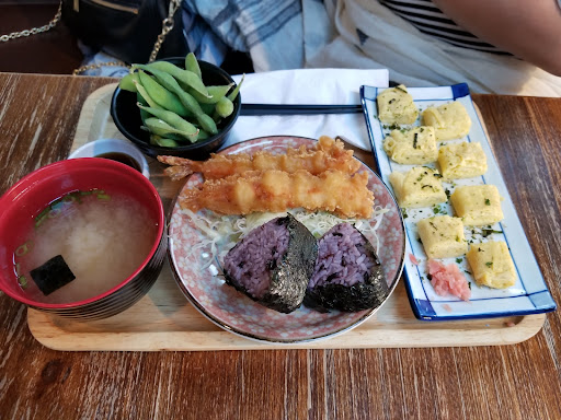 The Kyoto breakfast was perfect. It comes with tamago (Japanese rolled omelette) edemame ( Japanese beans) shrimp tempura, and rice balls. The theme of this meal is light and savory. The tamago has a firmness on the outside, but when you bite into it, it's fluffy and soft, and amllmost melts in your mouth. The shrimp tempura was lightly battered to give a nice crunch, without giving the heavy feeling that typically accompanies fried food. The rice balls were very lightly seasoned such that it leaves a pleasant aftertaste on the tongue without overwhelming your senses on the initial taste. The edemame is pretty standard. If you're looking for a meal but aren't starving, or a meal to eat where you'll continue walking afterwards or well.... A breakfast, this is the meal to get.