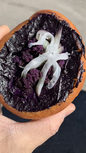 My first bite into the jammy ube ($2.99) was interesting and unexpected. I'm not sure I liked the feeling of the purple yam filling flooding onto the roof of my mouth and wished it was captured as a jelly centre similar to the Bavarian doughnut - it's messy so take extra care if ever eating the treat while wearing white. Nonetheless, I enjoyed the added coconut with the yam, which created an almost black sesame essence and the filling was the perfect sweetness.