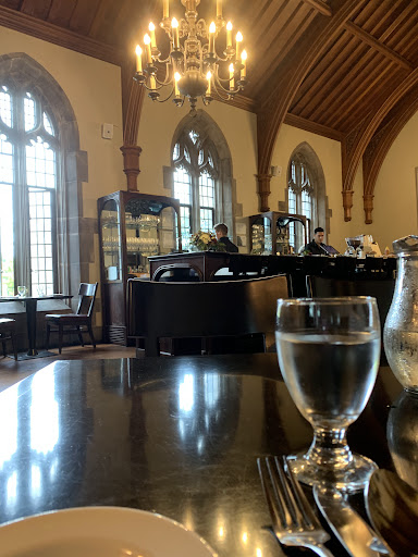 Campus restaurant serving creative weekday lunch in a suite of airy Collegiate Gothic-style rooms.