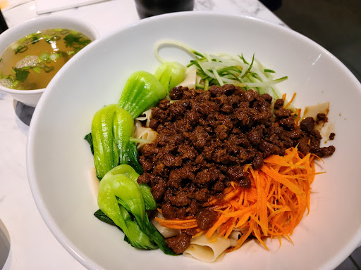 Read moreI had had a busy day, but was determined to find a noodle house for dinner and had seen this one online. It was close to where I was so I went to it. I sat on the outside patio. The wait staff was a young woman Who was excited to be asked her opinion about the menu. In fact, she asked if she could settle someone’s bill so she could then devote her time to explaining it to me, which was great. She recommended a certain dish and when I also wanted to order another she thought it would be too much and suggested I get it next time I came. Good advice. She suggested I order the beef and noodles. It’s on the first page of the menu and I think their signature dish. I was certainly not disappointed. Rich gingery broth with endless broad noodles and delicately sliced beef with cilantro and green onions. I also got her advice on the size of the noodles, which you can pick, And they brought me chili oil so I could organize my own level of heat which I also appreciated. Honestly, I’ve rarely had such an enthusiastic and helpful wait staff before. She was utterly delightful and explained about the noodles from her hometown and the culture Behind it. She was even helpful when I asked about certain etiquette when eating noodles. Anyways, suffice it to say the food was incredibly delicious, authentic and an excellent price. I will absolutely return and I highly recommend this very simple and very excellent noodle house. My bill came to $16 and I was full. I left a $10 tip for her and only wished it could have been more. Well deserved! on the way out, she passed me what I thought was a peppermint and I declined, but she insisted I take it and said it was taro with what feels like Jell-O inside and she was sure I would love it…and Just like everything else…...