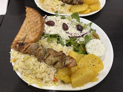 Food: Chicken Souvlaki Dinner Chicken has a nice crisp on the outside and pretty soft on the inside. A slight dryness. However, absolutely no flavour. Not even any flavour from the grilling. If anything it had a bit of a metallic taste. A bit less than average amount of chicken.