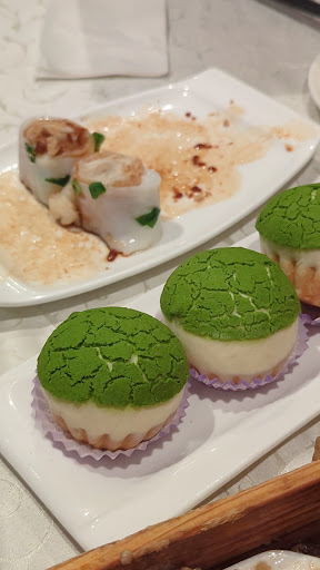 The beef enoki roll was crispy outside, tender inside. Bean curd roll tasted good and was tightly wrapped but their chopping of the ingredients inside is sloppy, some were properly julienned others were whole large pieces. The spinach dumpling filling was great but wrapper was more soft than bouncy. Fish maw cotton chicken tasted great but wish there was more than 2 small pieces of fish maw. Rice roll with fried dough stick tasted good but the dough stick was under fried and very soft. The mango pancake didn't have much mango and the pieces that were in there were sour. Lastly the BBQ pork bun was just slightly undercooked inside so the dough was still white and gummy, an issue that might be solved by switching buns from the top/bottom rack of the oven, or wrapping without the bigger pinch of dough in the middle.
