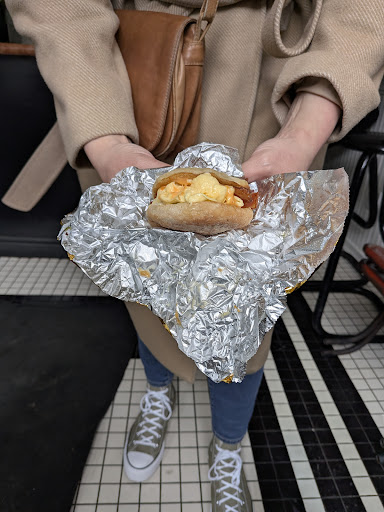 The Gold Standard Breakfast Sandwich – fluffy scrambled eggs, sharp cheddar, crispy bacon, pickles, aioli, and hot sauce on a toasted English muffin. Tastes great. No notes on flavor. But at $10 for a takeaway sandwich with nowhere to sit? That’s a choice. Service: Not friendly, not helpful. No greeting, no vibe, just an order number and a bag. You’ll get fed, but don’t expect warmth or welcome.