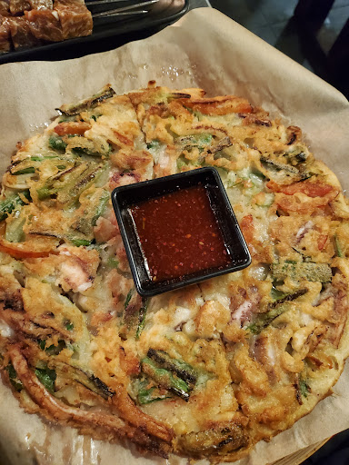Read moreBeen wanting to try this restaurant for a while now! Finally got around to it. We arrived at 7 expecting there to be a wait for a table but surprisingly there were tables available so we secured a spot in the patio quickly. I read reviews online about them being overpriced but I thought $6.95 for 4 skewers was pretty reasonable. The meats do shrink after they're cooked making the pieces even smaller so if you want to fill up on meats alone, you better order double the amount or more! We ordered the spicy squid, steamed egg and korean egg roll with cheeese. All were good but I'm surprised we had to pay for steamed egg as other kbbq restos gives that as a side. Speaking of sides, they don't give a big selection of free sides. We only had cucumbers, seaweed, japchae, & salad. Surprisingly no kimchi!