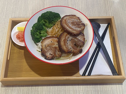 The chashu was well cooked and visually pleasing but the bowl was a barebones affair, with not much more than the broccoli, chashu and a small amount of sweet seasoning with sautéed onions underneath. The rice was standard jasmine rice rather than Japanese rice which was a bit disappointing. It came with some daikon on the side, and also pickled ginger which was a bit odd.