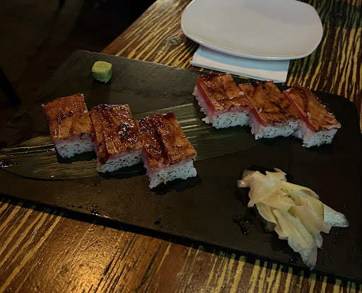 Wagyu Pressed Sushi (Oshizushi) , it was simliar to the rest of the food. Very Bland. Most places top this type of sushi with a sauce but there was non in this case. Must be eaten with soy sauce. It was cool how they torch it in front of you though.