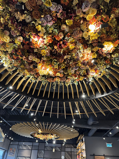 The restaurant is not that big. I call it a "normal but on the small side restaurant". The tables all have hot pot sized electric induction type stove tops, either a big one or a small one. The restaurant looks pretty, with flowers on the ceiling and the tables and chairs that match the decor.