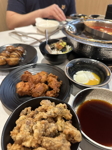 When we arrived, the waitress came and told us to scan the QR code to see the menu. After looking over, we asked her how are the portions for each order since nowhere in the menu shows any details of quantities or sizes. She didn’t reply and looked at us clueless. We didn’t want to give her hard time so we took a chance of ordering one of each items that we wanted to see how big the portions were. When the food arrived, we noticed some items were smaller portions than we expected so we asked the waitress to increase few specific items so that all 4 of us can at least try a bite of each item. She ended up ordering everything double including veggies, noodles, all kinds of unwanted items.. we asked her why are there so much and she said we wanted everything double and she said she can’t take it back because that was our order. We had multiple plates of multiple types of mushrooms, all different kind of veggies and multiple plates of just noodles. All we wanted was few items to be added on but she misunderstood and piled the unwanted food on our table.