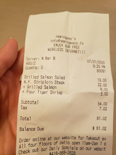 In conclusion, if you enjoy being treated as a pawn in a bartender's twisted psychological game, then by all means, frequent Hemingway’s. However, if you value basic human decency and expect to be treated with respect, I urge you to find solace in any other establishment that possesses even a modicum of professionalism and genuine customer care. Your sanity and self-worth...