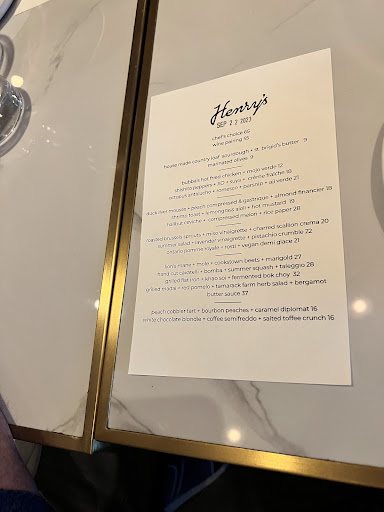 Read moreChose this for my birthday dinner with my sweetheart and in-laws. The space and experience really appeals to people of all ilks and ages. The space is cool and stark though candles and wonderful staff add a generous dose of warmth. We enjoyed everything we ordered and amongst four adults we polished 11 of the small plates, including a dessert we split. And we were all very satisfied. A note on the wine, my bon-vivant-will-travel-for-food-and-wine family wasn’t thrilled with the wine list in terms of varietals/price points for bottles, meaning they wished they had more options; we opted to enjoy by the glass/cocktails. My FIL asked if his Pinot was a fresh bottle and they confirmed it was open the night before (which is fine and perfectly acceptable!), and they offered to replace his glass, but he declined and was happy to finish (he was more curious and didn’t position as a complaint). I would be curious to see what’s on rotation the next visit. I get the impression they cycle new bottles in with some frequency. I’m not sure if it’s on account of knowing it was a celebratory meal, the question about the Pinot, or just a surprise and delight gesture… but they comped our dessert and delivered with a candle - that felt low key extra special. We enjoyed our evening in the dining room, though the patio seemed cozy and the chic bar accommodated guests with ample room to enjoy. I would recommend Henry’s for a variety of occasions (and non-occasions). I could see myself walking by at the end of the day and popping into the bar for a glass of wine and what one of the lovely staffers called “chic poutine” (a potato dish with veg demi-glace and cheese). This spot has the unique ability to be “just right” and “not too much” of anything - which is really special and draws a unique and loyal...
