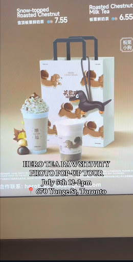 There was an event hosting free items like boba, a dog keychain, and a newspaper photo from 12pm-2pm.
