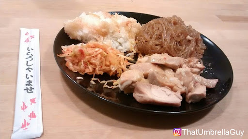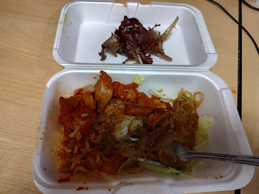 Asked for the chicken teriyaki, with noodles and kimchi on the side. Comes with white rice. It didn't look like much in the take-out box, but after plating it, it's a pretty good portion.