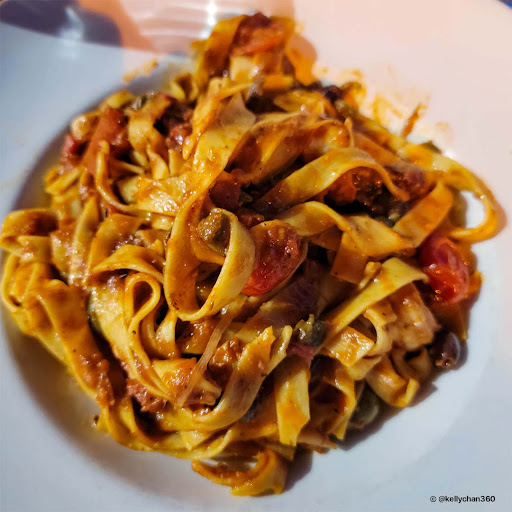 Feeling somewhat disheartened, I decided to move on to my entree, the Puttanesca Pasta (29.00 CAD) and a Caesar Salad (9.00 CAD). The pasta was overcooked, and the sauce had a strange aftertaste. There was barely any seafood in the dish, making me feel like I was cheated of my money's worth. The Caesar Salad that came with the pasta was mediocre at best, and it seemed like it had been sitting on the plate for a while.