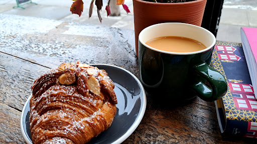 Read moreit is a very charming, but rather tiny space. finding a seat can be a challenge, as most of the customers appear to be parked with their laptops for significant time, and they don't look overly enthusiastic about the idea of sharing a table… coffee is good and the almond croissant was totally delicious. Prices seem to be slightly higher than average (the croissant - $5, a cookie - $3.99). The place offers other goods like notebooks, toys, greeting cards, and other gadgets, plus frozen food, beverages, snacks and sandwiches. Overall a very pleasant experience. right by a park and...