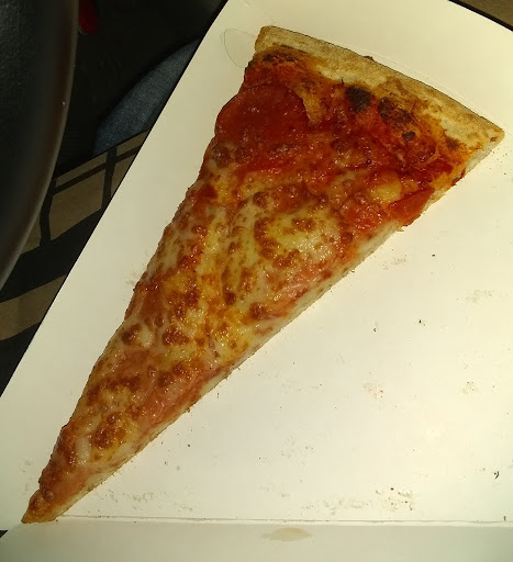 I don't do reviews unless the product is very good or very bad because anything in between doesn't count. I had a review for these guys before because the pizza was among the best that I had. After the third trip I started to notice that there was less and less cheese on it. So I took down the review and avoided the place. Today I was passing by and I said let me try them again. I noticed they have increased the price on their walk-in special by 50%. I figured that maybe that will solved the lack of cheese problem but seeing as the place was nearly empty at 6pm, on a Sunday, I figured that i better go with a slice. Thank God I did because it no longer tastes like pizza. The cheese has the taste and texture as if it were spread from a bottle with a spoon, like cheese whiz. I ate half the slice and then I threw the other half, which you see photographed, away. I don't know if that stuff can be legally classified as cheese. All the pizza shops on that stretch of the road are skimming on ingredients and these guys may feel that is the only way to compete and have even one upped the competition with fake cheese to get the competitive advantage. Which is a shame because unlike the competition, which are working under a franchise, these people are working under their name and their honor or lack thereof and for that I'll...
