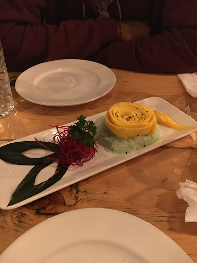 I had the Tom yum soup, khao soi, a Thai iced tea and mango sticky rice The Tom yum soup was full of flavour and spice (beware of you have a low spice tolerance) with chunks of some vegetables and whole shrimps in it. The serving size was enough for one person, but I preferred to split it since the main course was filling. The Khao Soi (a golden curry w/egg noodles and crispy noodles) was delicious and pretty filling. The curry was a little thicker than other places but that made it really good as it coated the noodles really well. When you order it be careful if you want it spicy because it's hot! But not in a bad way. the Thai iced tea was a great pairing with the curry and helped cool my mouth as well. It was just the right amount of sweet and milky without being overpowering. The mango sticky rice provided a sweet note to end the meal. The coconut that was used wasn't overpowering to the taste of the desert and the mango was fresh, sweet and delicious. Presentation of all the food was great as well and added to the rest of the experience.