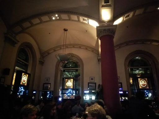 Read moreStopped here on a Saturday night after seeing a show. Decent interior with vaulted ceilings but could be updated. We were seated by the door and felt the cold draft every time the door opened. Beer was mediocre - disappointing and flat. Ordered the Shock Top and Stella and expected much better beer. Ordered the wings, warms spinach dip and crabcakes. They had no crabcakes so we got cheese bread. Wings were so-so, came to the table lukewarm. Cheese bread with marinara was good except some pieces of bread had no cheese. Dip was okay - I've had better warm artichoke dip. Best part of this visit the as the musician playing. He sounded great and had a really good playlist. I think his last name was Biggar, Overall this place is overly hyped up but not worth a...