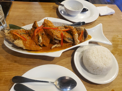 Read moreWent here for the first time. We went early evening on Friday. The place was empty except for maybe 3 tables. There was 5-6 staff people just behind the desk and workng in the front. The staff was stand-offish, didn't really greet us except for one who then proceeded to ask if we had reservations. I said no...i then asked about seating off to the side and she said those were reserved (no one sat there the entire time we were there). She then told us we had 90 minutes only to sit, order and eat. we had 3 adults and 2 children. I get the limit but found it odd to mention that especialy since it was our first time here. They have only chicken and beef halal options and there is pork on the menu just fyi. The food we ordered was just okay. We ordered a fried whole fish. When it came it was cut in pieces and deep fried. They bring the whole fish and present it with the cut pieces. It was very hard. I didn't see any actual fish meat but the fried parts were moreso bones and a thick batter layer. It was terrible. So not worth the price. You are better off buying your own fish and just throwing it onto the bbq. I will most likely not ever come to this restaurant again. There's plenty of nice thai restaurants with better food portions and flavor. Staff makes a huge difference and customers' experiences. I would give them 0 out of 5...