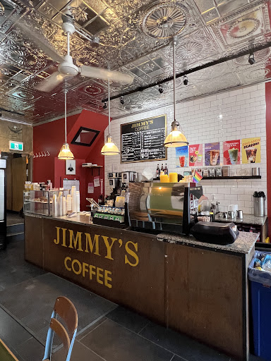 Read moresuper charming cafe - with big windows and beautiful wooden tables (and amazing, beautifully decorated sheet metal ceiling - which seems to be their trade mark that I've seen in other locations). Good coffee - I've noticed that Jimmy's roast tends rather on the darker side. friendly and attentive staff, not overwhelming chill music. Perfect place to sit down, read or quietly work on your computer. during my visits I didn't hear anybody talking loudly on cellphone/conference call apart from one take out customer. There is also some merch (like cheerful yellow cups, hats) and you can buy beens and have...