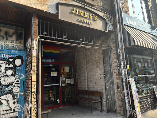 Read moreJIMMY IS STILL THE MANNNNNNN!!!!!!!!!!!!!!!!!!!!!!!!!!!!! Crack house on the outside, country club on the inside, this is one crack-a-lackin good coffee shop you don't wanna miss out on. Came here one sunny day after visiting the AGO (would HIGHLY recommend), and just like the other locations I've been to, Jimmy did not disappoint. I got the only order I ever f&@king get, an iced matcha latte. Hot tip: instead of getting it sweetened with sugar, ask for the vanilla syrup. It will run you about 80 cents more, but when I tell you I have never felt better about spending 80 cents I mean it with every inch of my itty bitty heart. Ended up paying about 6 bucks in total for the matcha, which I think is a perfectly reasonable price. There is only ever one barista working there, so you will have to wait your impatient little a$$ a little longer than you would at ur Starbucks coffee chain. #smallbusinesses Service from Baristas is always nice- they do seem slightly high, but hey I'm not complaining because they are very very nice to me. There is ample seating and an outdoor patio for when it gets warmer. Have not tried other things at this location but if the baked goods are consistently as good as the matcha at this location, I'd give it a go! Gave 4 stars instead of 5 because my all time fav matcha is still from Sanremo bakery or Pilot coffee roasters! Don't let the sketchy...