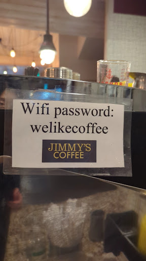 Read moreI didn’t realized they closed at 6pm. I walked in the door at 6:01 as the door was open, lights and two guest inside. I chose to come here instead of going to Starbucks as I venture to Jimmys often at other locations. When I walked in the girl working the counter shouted from the other end of “uhh this is my last guest” making a hand gesture then that guest intended to say “OOOHHH SNAP” i work in the service industry. I get when it’s the end of your day and you wanna leave and go home. At this time and need of whole covid personally I would’ve just served the guest. I didn’t even want a latte i wanted an iced tea. I was thirsty and went out of my way to go to Jimmy’s a smaller establishment than to go to a Corp Starbucks which I ended up having to go To anyways. Idk if I’ll return to a Jimmys from my experience yesterday. Felt embarrassing and non appreciative in this...