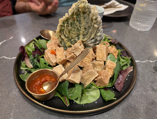The fried salt and pepper tofu is excellent. It's crunchy with strong garlic and pepper flavour. The fine diced bell pepper absorbed the salt and spices, which takes some flavour away from the tofu cubes. When eaten together with tofu, it is excellent.
