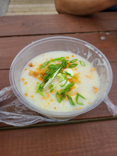 A friend and I were strolling along looking for a snack at Market 707. I usually satisfy myself with a basic onigiri, but he was looking to show off his fave, so we stopped at Kanto by Tita Flips. First of all, Market 707 is a collection of shipping containers retrofitted as restaurant stalls at Bathurst and Dundas. There's plenty of cultural food variety to satisfy just about anyone. Note that it's all outdoor seating though. Kanto is Filipino takeout, and apparently the first of its kind in Toronto, at least according to the owner Diona Joyce, a.k.a. Tita Flips. The restaurant is aptly named Kanto, which is "corner" in Filipino. I frankly wasn't looking to chow down, so I stuck to one heavily recommended dish; the arroz caldo. This is essentially Filipino congee. Put simply, this is the best congee I've had to date. It all starts with a wonderfully seasoned, perfectly salted congee. I've had other congees that left something to be desired in the flavour department, but this congee had a rich depth of flavour. It's dressed with green onions, fried garlic bits & pork cracklings for texture and flavour, tofu, thinly sliced boiled eggs, and a subtle but wonderfully complimentary hint of lemon. Your food is made to order, and apparently Kanto sources its ingredients fresh, which absolutely comes across in the food. I can't say personally what the rest of their food is like, but if similar care is taken, I can't wait to bring a friend over...