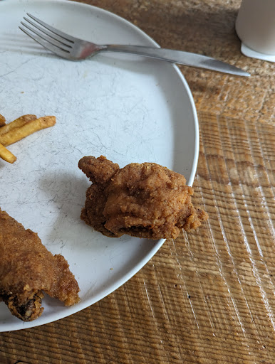 Firstly, I found it off-putting that they asked for tips when I was paying. Not only was there no option to leave 0% as a tip, but I also believe that customers should not feel obligated to tip in order to ensure the quality of their food. Unfortunately, I decided not to tip, and as a result, I received some really subpar pieces of chicken. In fact, one of the pieces was not much larger than popcorn chicken, which was highly unsatisfying.