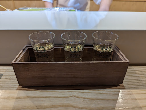 FOOD: We opted for the sushi omakase experience but will definitely be back to try the tempura omakase. The sushi course had 21 items which is a lot. It started with an excellent sashimi appetizer and was followed by a great selection of sushi pieces. We sat facing sushi chef Katsumi who was great at explaining each sushi piece to us along with some of the history and nuance with his style of sushi, including the Edomae specialty of preparing the fish. The stand-out pieces for me were the squid in the sashimi appetizer, mackeral (cooked), scallop, toro (there were two), the chef handroll. I also ordered a sake flight (3) to go along with my meal. The sake was an top notch selection and each one was different that went nicely with my food.