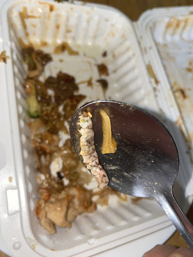 So today, as Friday April 26th of 2024 6:50PM I ordered my food and I brought it to my house to eat it here and as I am almost done eating I found the most disgusting thing in my food which for the look of it, it looks like a centipede or something like that.
