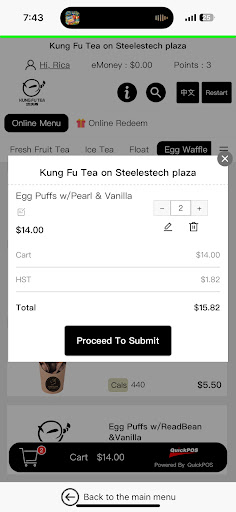 Read moreKung Fu Tea near the Steeles Technology Campus is a great stop for bubble tea enthusiasts looking for a refreshing break. The shop's clean and inviting exterior is easy to spot, and the interior is spacious. With a minimalist décor, plenty of seating, and a casual vibe, it’s a great space for solo visitors or small groups. As an added bonus, they offer a 10% discount if you show a receipt from a nearby shop, making it even more appealing for a post-meal treat. The service was quick and efficient. Within just a few minutes, my order was ready. Rose Milk Tea (Large, Less Ice, Half Honey): This drink’s soft pink hue was pretty to look at, and its rose flavour gave it a unique, floral twist that stands out from more traditional milk teas. It was a perfect choice for those who appreciate delicate floral flavours. Overall, Kung Fu Tea is a fantastic choice for anyone nearby seeking a quality bubble tea experience in a relaxed setting. I’ll definitely be back to try more of their...