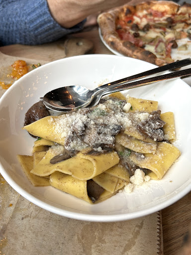 The most disheartening aspect of our experience, however, was undoubtedly the main courses. One of my friends ordered ravioli with tomato sauce, only to be served a portion that seemed more suitable for a five-year-old child. Similarly, another friend's pappardelle was excessively thick, making it a challenge to enjoy. While the pizzas were passable, it was disheartening to pay $25 for a frozen-dough pizza when the expectation was for freshly made crust.