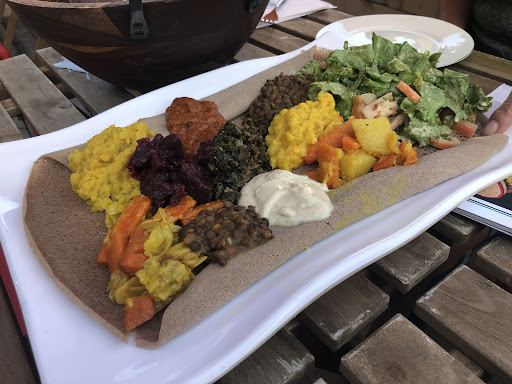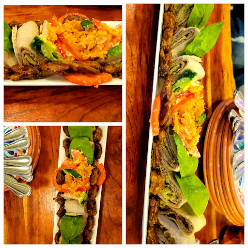 The appetizer Injera Rolled with Lentils, and Hummus with Injera, and the salads are also absolutely delicious. The portions of the appetizers and entrees are very generous and filling.