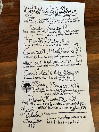 Beyond their enthusiastic participation in my adventure game, the food was outstanding, creative, fresh, innovative and visually stunning as per usual. The pricing is also not egregious and worth every penny. We shared 6 beautiful dishes (almost tapas style but quite generous, we left full and we aren't small appetite people), three mocktails and a dessert; for $195. Like I said, WORTH. EVERY. PENNY. And then some.