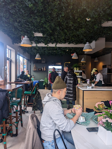 Wanted to try this local sandwich place out after hearing about the menu. All sandwiches came in a plastic basket lined with paper, similar to a fries or hotdog place. Tried the 7 E 11 sandwich which I later realized was emulation of Japan's famous 7/11 egg salad sandwiches. The bread was fluffy and white, with no crust filled with a balanced egg with mayonnaise mixture. One end was covered in green onions, the other end had togarashi which is a Japanese "chili" like spice. Would've wanted a dip? Perhaps spicy mustard to offset the mayo and egg but delicious otherwise. $15 for a double stacked sandwich. My food mate had "Cali" which is the prosciutto and with triple cream brie and fig on croissant. Food mate states the sandwich "is the bomb". Tasty sweet fig with creamy brie that offsets the salty cured meat. Croissant was fluffy and soft. Meals include housemade chips and a pop. We tried the peanut butter vanilla potato chips. Vanilla was more prominent than peanut butter on these chips. I'd suggest more salt on the potato chips to accentuate the sweet vanilla flavour. Cost of combo $25. Service was prompt and patient, received food in less than 5 mins. Seating is similar to a French bistro accented by a vine ceiling giving a pleasant outdoor feeling. Overall, medium price for gourmet sandwiches, will come back for a good sandwich. Feedback: Have a place to pour your own water or a tap for those who aren't pop or juice drinkers or coffee is always appreciated. But, Pilot coffee is next door. Really...