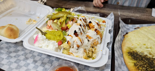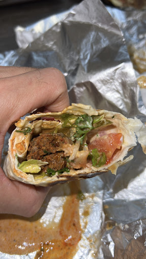 The three of us each consumed a kebab wrapped in a cheese manakish, which is kind of like a cheese pizza, but with a soft crust similar to a thick Greek pita. They bake their own pita fresh to order, topped with 5 types of exotic Lebanese cheeses. Then they place a mouthwatering, perfectly-seasoned chicken, beef or lamb kebab in the middle, and pile it up with your choice of homemade toppings.