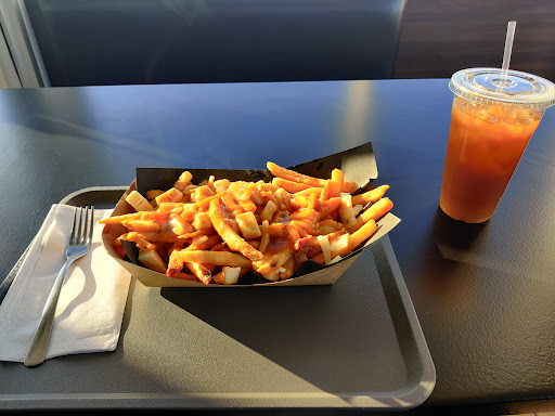 Had the Supreme Poutine with mango ice tea. It's very filling. They said their gravy is vegan. Fries had some batter. If poutine isn't for you, the place seems to be like a typical American burger joint (they have ribs IIRC) but the restaurant is afghan cuisine.