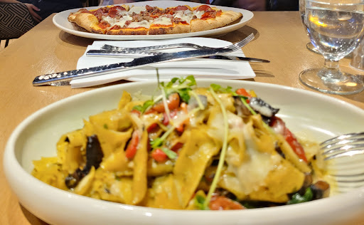 Have never had a server come check on a table ever, to the point that it's faster to go to the bar and order a second drink. You can't get modifications to almost any of the dishes (i.e. the pasta is a bolognese topped with pesto, but you CANNOT get it with just pesto if you don't eat red meat), Their "margherita" pizza is just a cheese pizza with half cut cherry tomatoes.