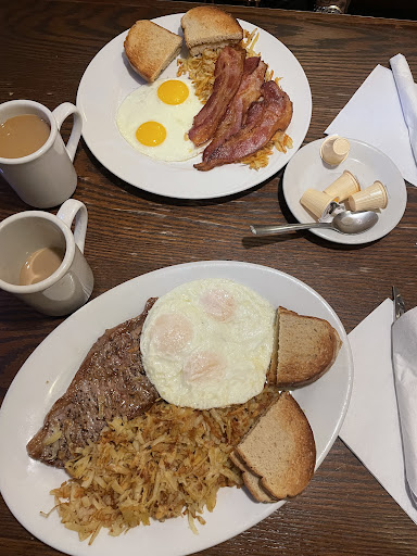 Even breakfast is bad now. We used to love this place - great food and service...but lately, I have been there twice in a week and the heat is on so high you can barely breathe, there is a strange woman customer who is always there and is very creepy and comes to your table to try to take your dishes away...she doesn't work there....she just hangs around....and she walks back and forth to the washroom where she smokes...it is gross. I have mentioned it before to one of the waitresses who does work there and she told me that this woman is 'her friend' I don't want anyone who doesn't work there coming to my table and taking away my dishes...she certainly doesn't have 'Smart Serve'... Went there today...eggs were undercooked, toast was barely toasted, sausages were not well done (like I asked) the tomatoes were almost white....it's summer - tomatoes should be their best now....We have decided that this place has continually gotten worse and worse. We are never...
