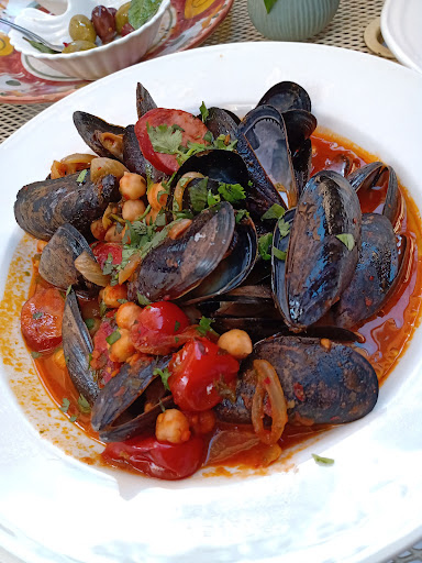 The Beer Steamed Mussels were spicy, but not hot, yet had a relaxing, savory flavor. Some might need extra bread and water, as it's pretty much a soup dish. I got an extra helping of spice since both dishes so far had Chourico sausage. That char on the sausage made a nice, bitter contrast.