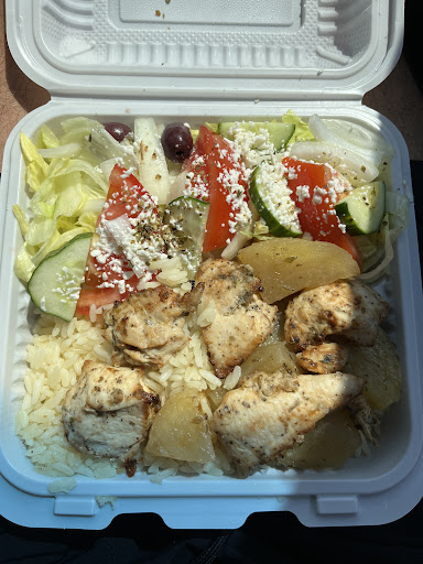 Read moreTL;DR Small industrial takeout spot; kind, direct service; flavorful but small-portioned chicken souvlaki, pairs well with tzatziki; textured but bland potatoes and rice; flavorless, bitter salad with oily dressing and yellow leaves.
