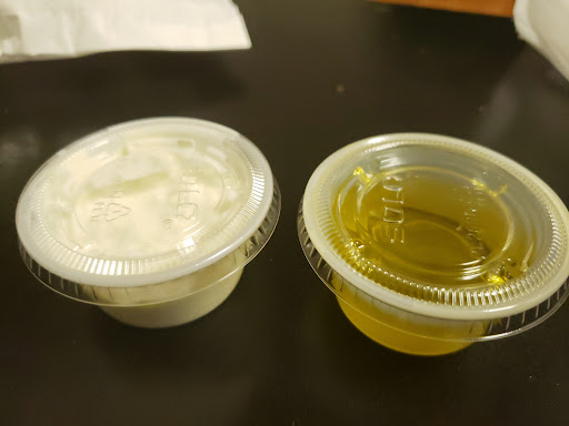 Food: I got the chicken Souvlaki dinner. Chicken was soft, seasoned well. Not overwhelming but obvious good flavour. The pieces are pretty small though, so 5 pieces isn't enough, more like 3 or 3.5 of a regular big piece. Pairs well with tzatziki or it might be a bit dry